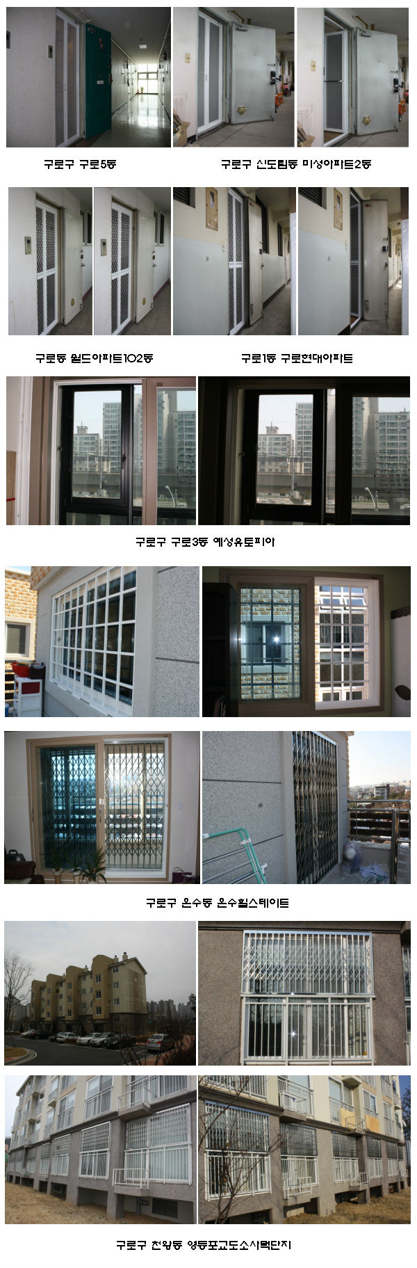 ÇϾáâȣ ±¸·Î±¸¿¡ ¼³Ä¡ÇÑ °¢ Á¦Ç°º° ½Ã°ø»ç·Ê ¸ðÀ½ÀÔ´Ï´Ù.